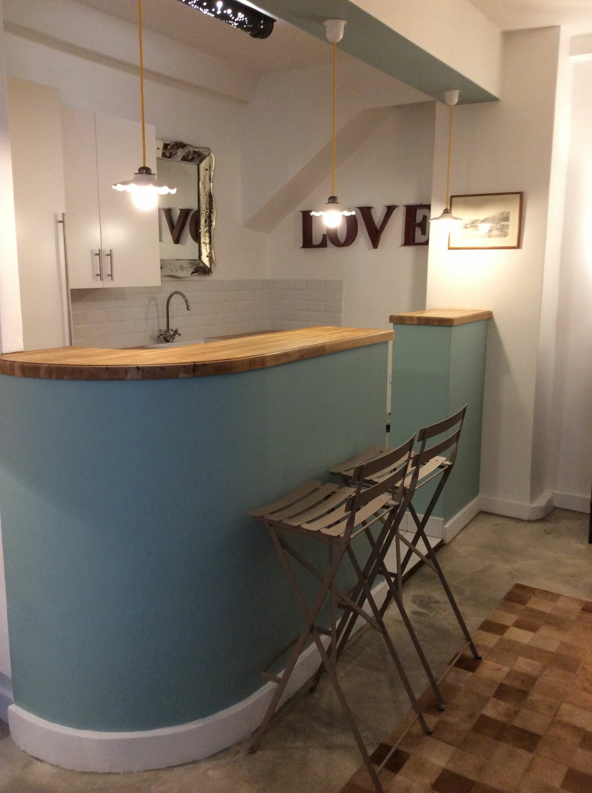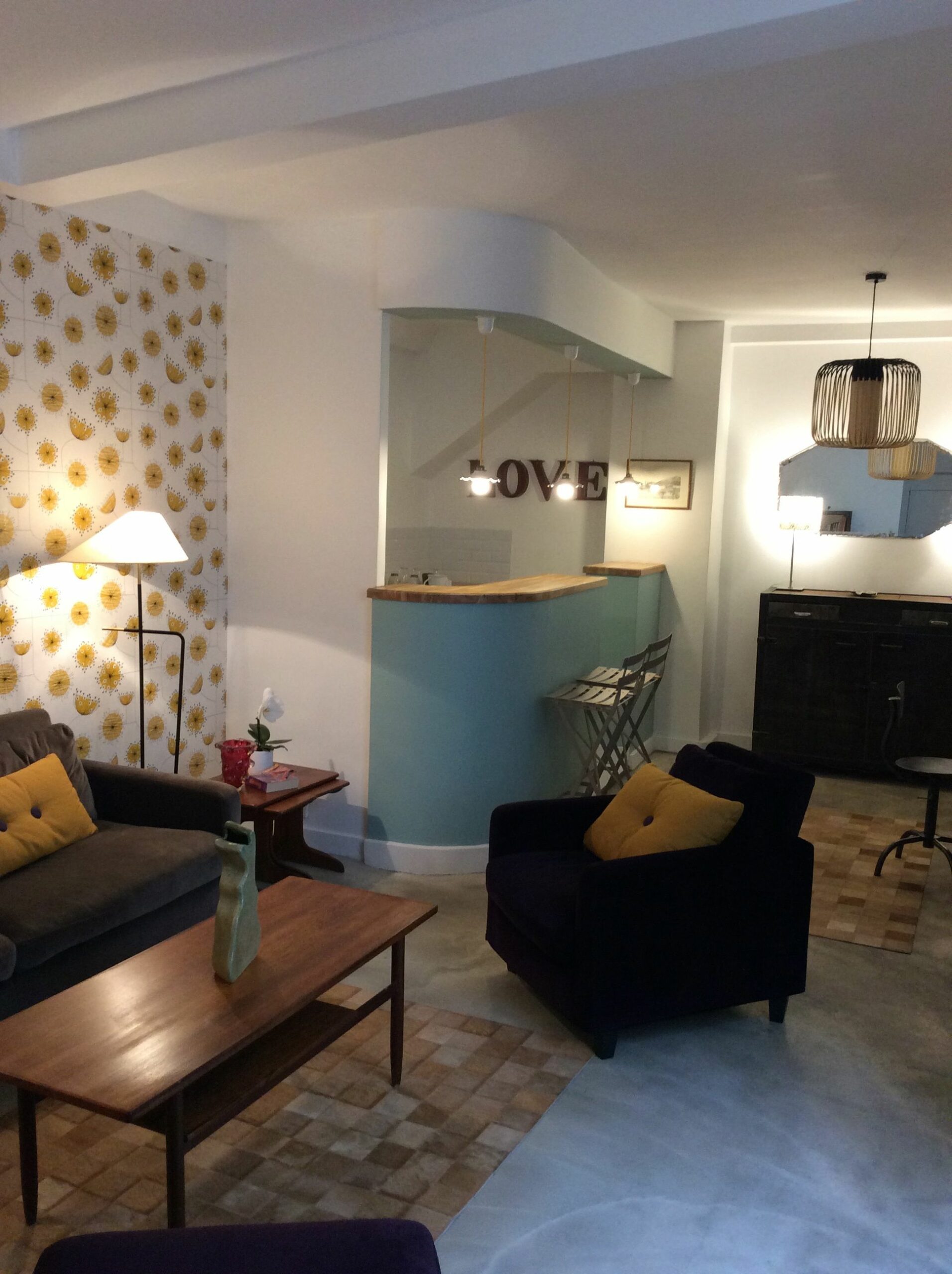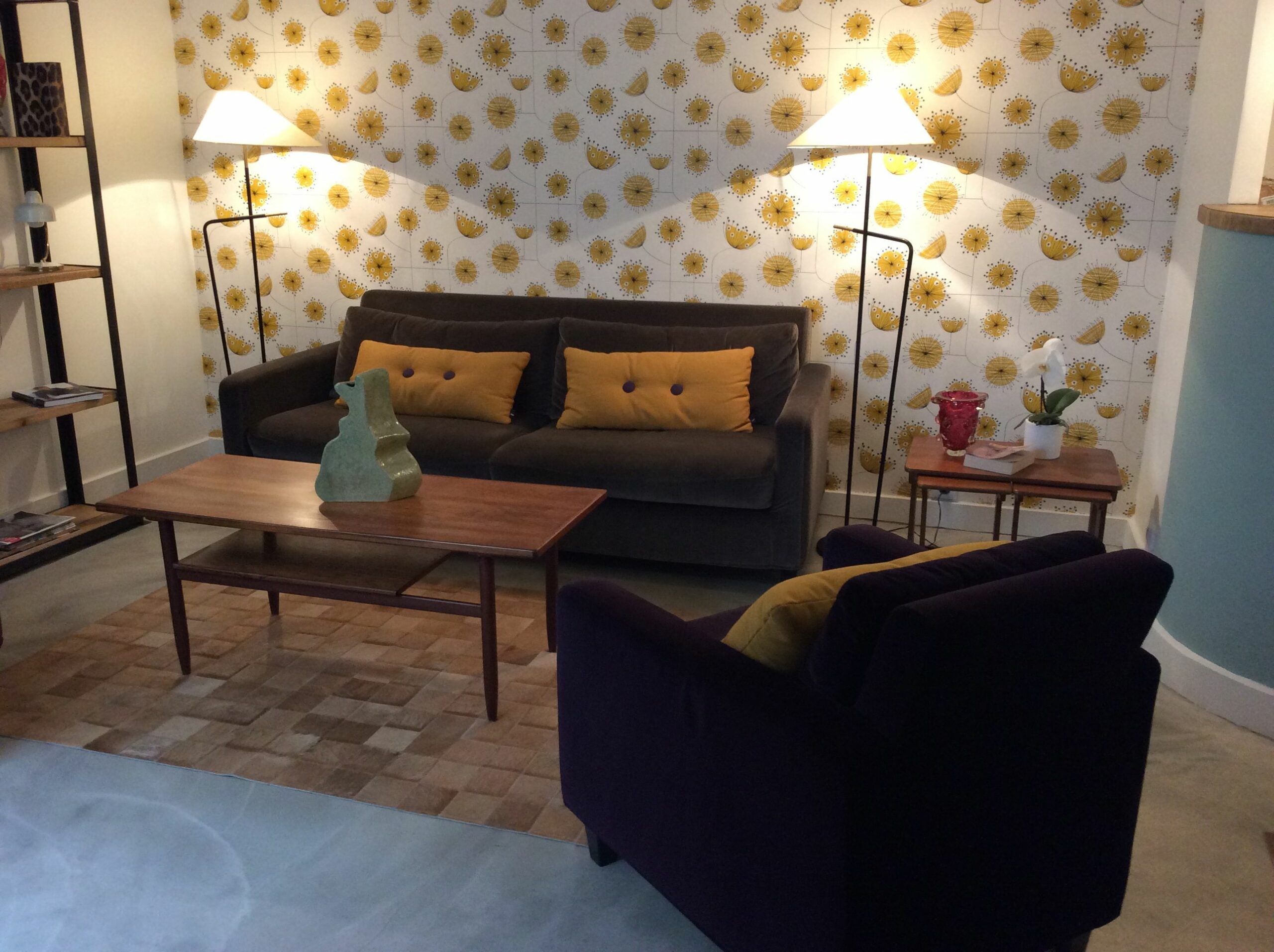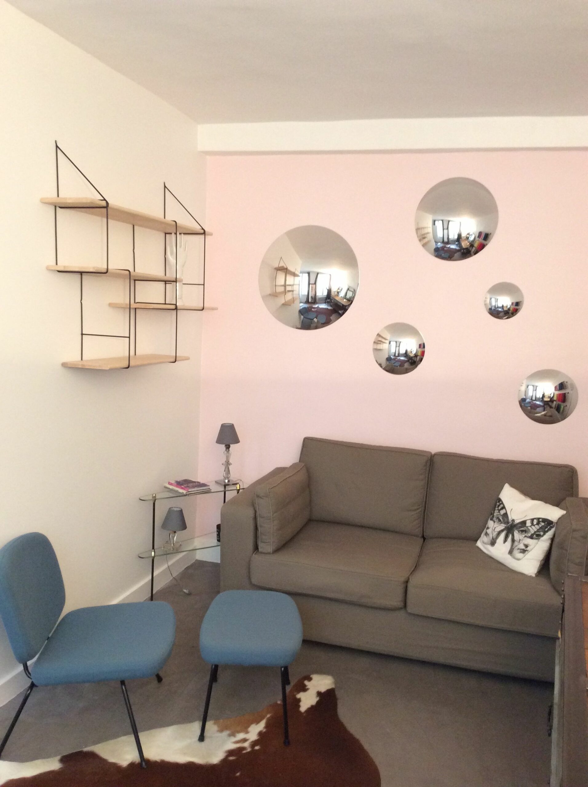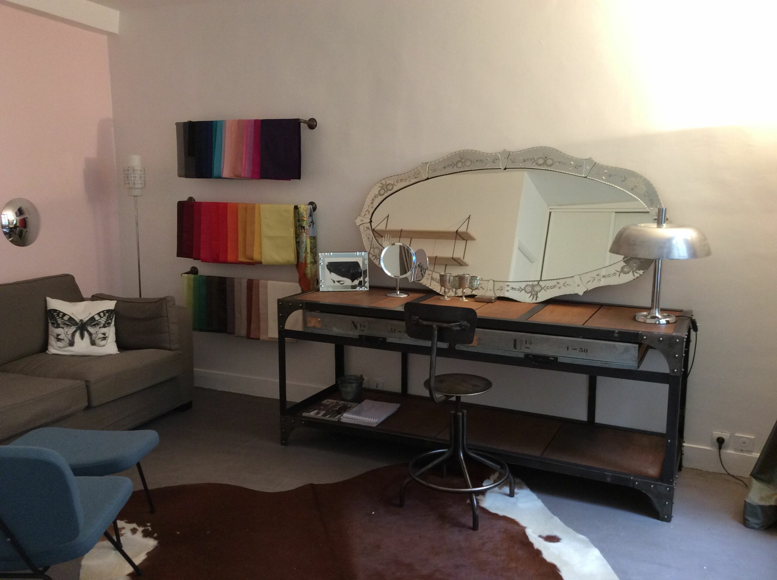 Bureau Paris Ier Associer les années 50 & l’Indus Chic.Aménagement et décoration d’un appartement destiné à recevoir de la clientèle.