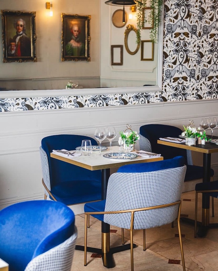 Accumulation de miroirs anciens pour le restaurant Chapeau à Versailles