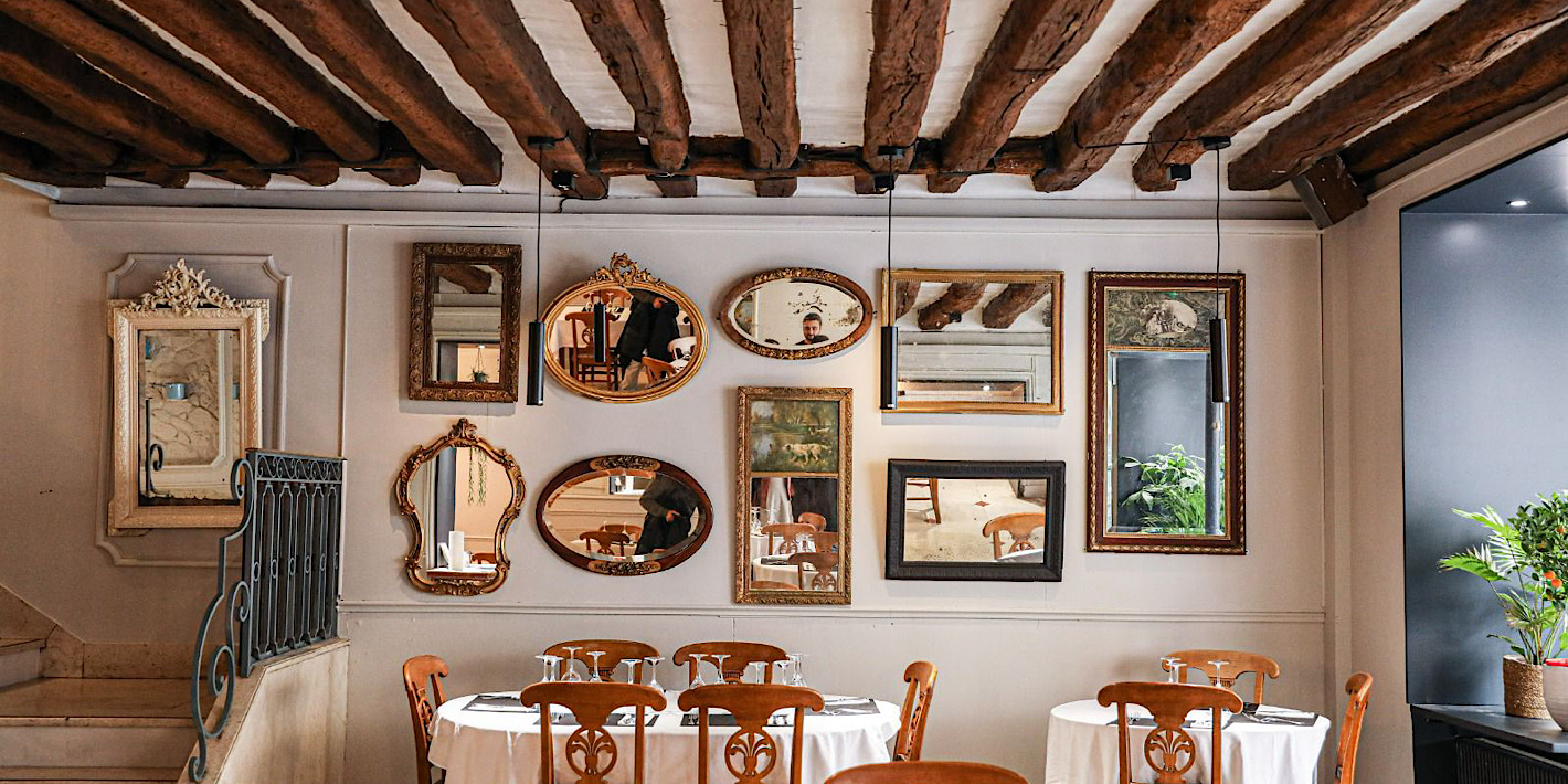 Accumulation de miroirs anciens pour le restaurant Chapeau à Versailles