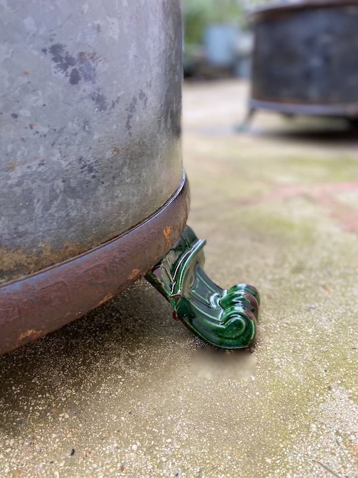 en 2 et agrémenté de 3 anciens pieds de baignoire en fonte