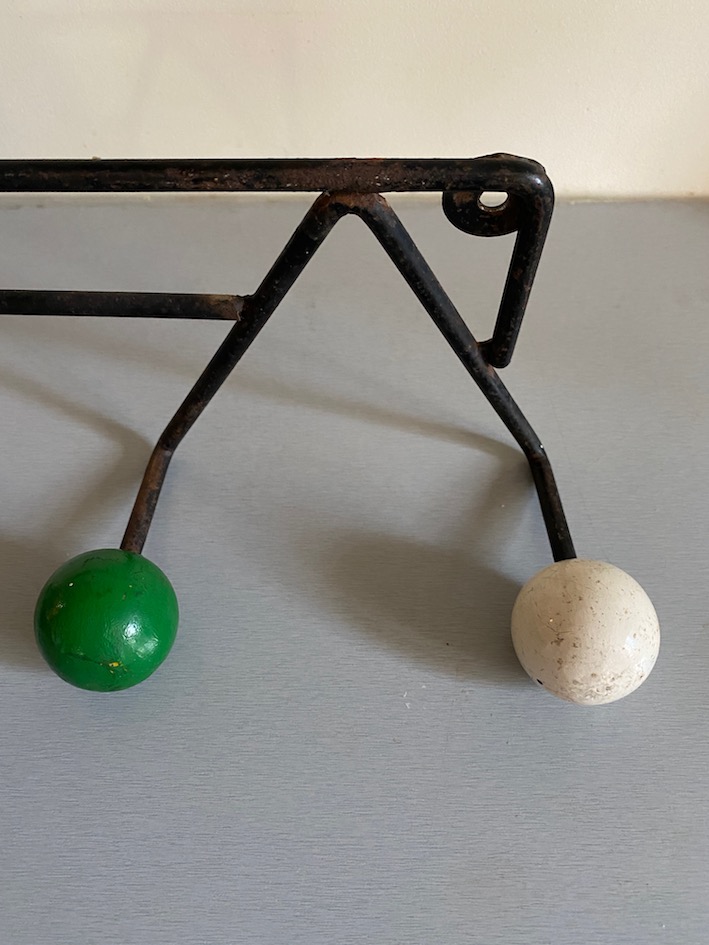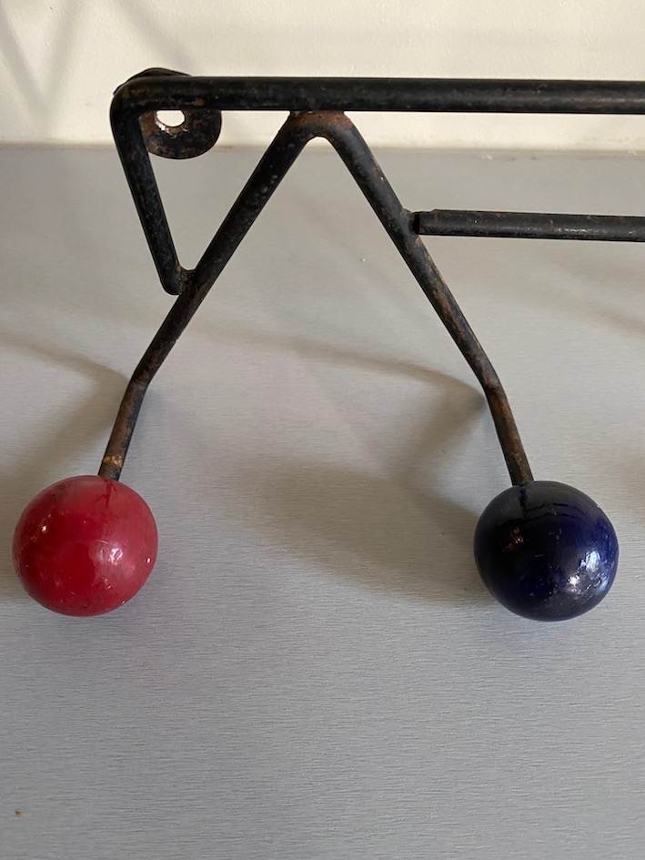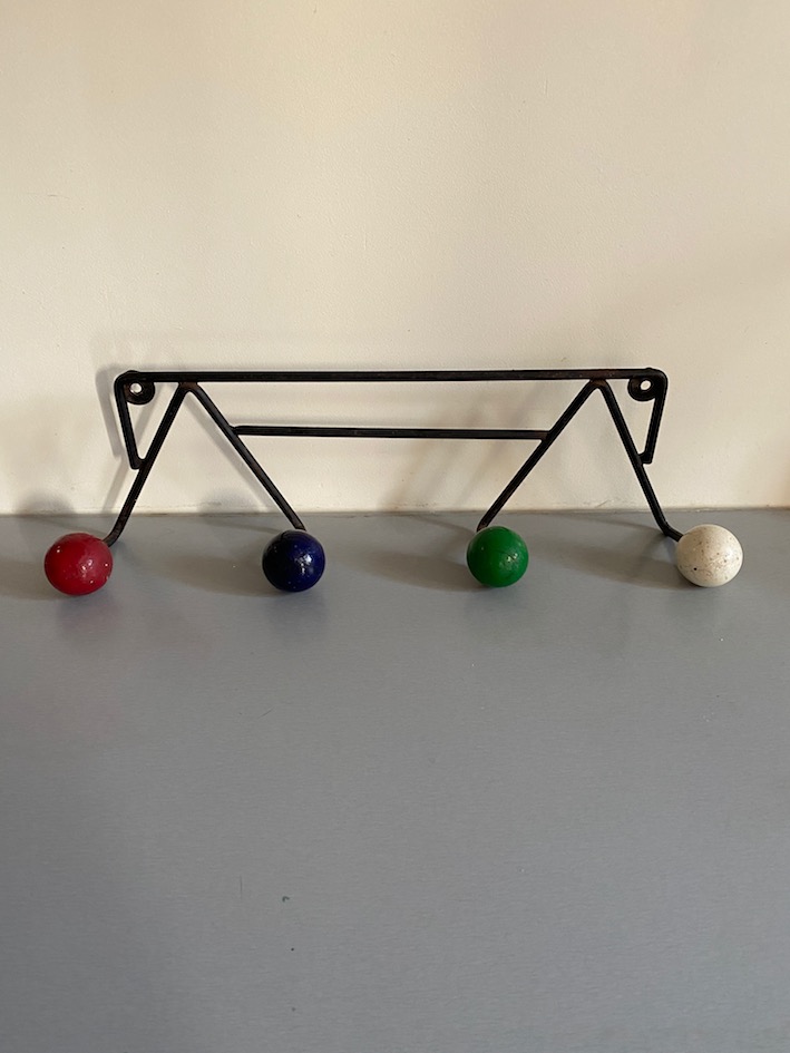 Porte- manteaux mural 1950 à boules colorées en bois,